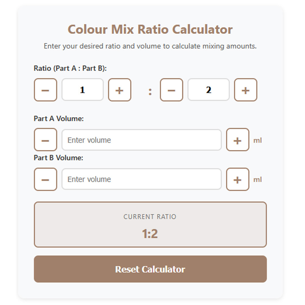 A Tool to help with calculating the volumes of 2 liquids, this can be colour, paint, polish, anything that requires ratios